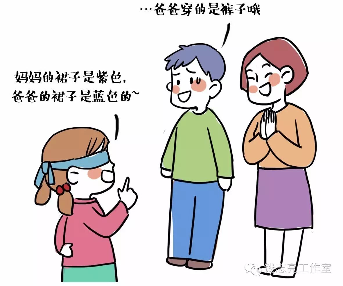 让孩子闭上眼睛,说出爸爸、妈妈穿戴的衣帽、鞋袜是什么颜色。为了增加孩子对游戏的兴趣,也可以请爸爸或妈妈闭上眼睛,说出孩子穿戴的衣帽、鞋袜的颜色。