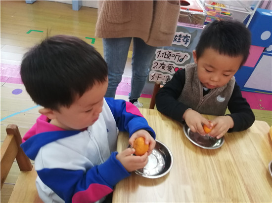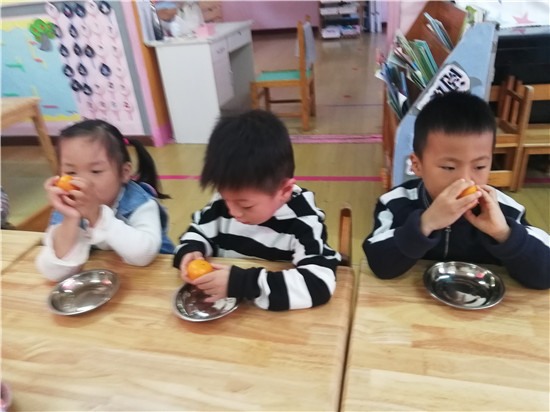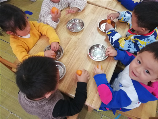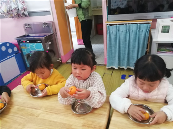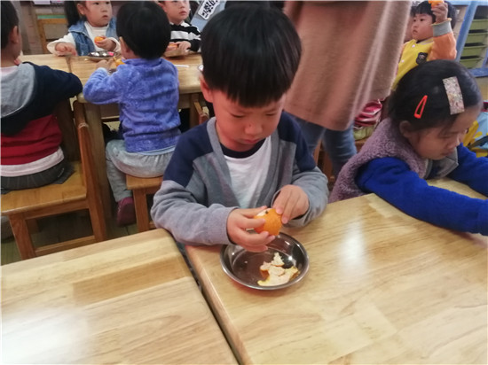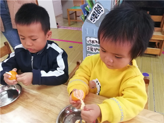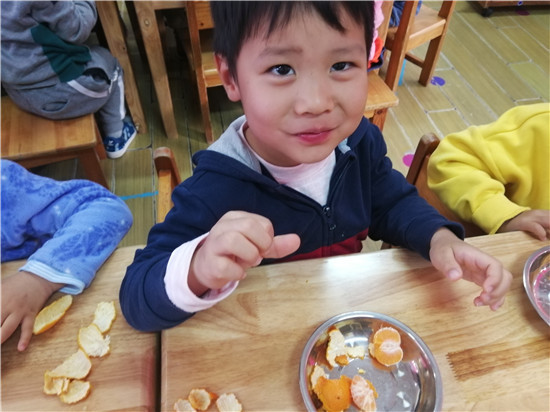 开始剥橘子啦,你看我剥的好快。