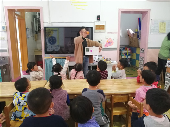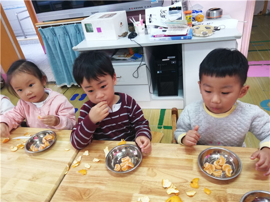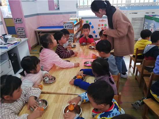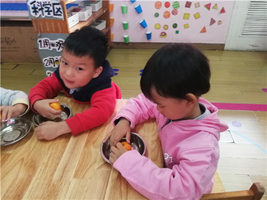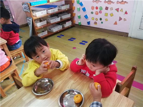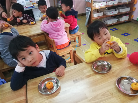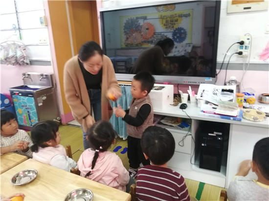 老师你看,这个橘子好香好香呢!