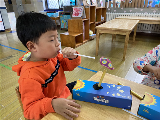 宝贝们开动脑筋想出了好多的方法,也知道了嘴巴吹也可以让物体动起来。