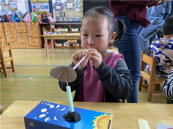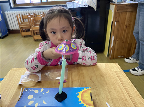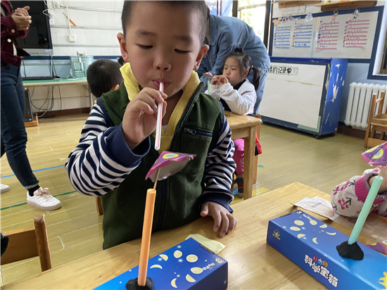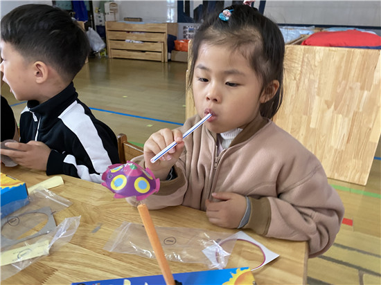 我们用吸管吹,我们的飞碟旋转起来啦!