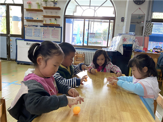 老师给宝贝们提了一个问题,剪下来的半个乒乓球怎样让它旋转呢?