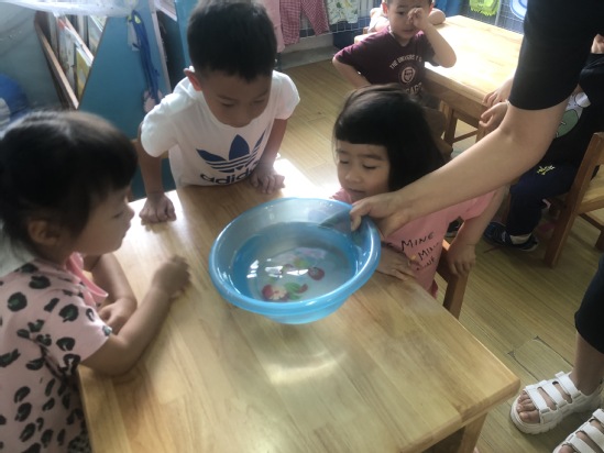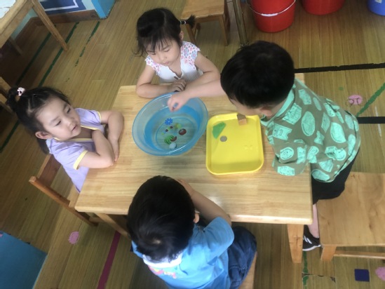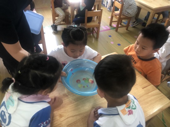 小朋友们,原来,根据每种材料的重量和材质的不同,不同的物体在水中会沉浮,重的东西会沉到水底,轻的东西会浮在水面上,而重的东西可以带动轻的东西沉下去。那么,小朋友们也可以回家找一找不同的材料,观察找到的材料是沉下去还是浮起来。