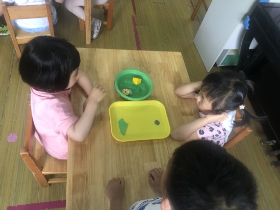 咦,今天魔法精灵带来的都是什么呀?盘子里怎么有这么多的材料啊~有雪花片、纸片、积木块、泡沫球,这么多材料要来干什么呢?不要着急,快让魔法精灵来吧~