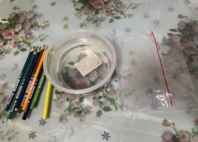 步骤一:准备实验材料:塑料袋、铅笔数支、水。