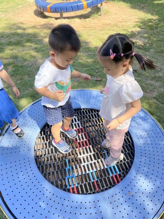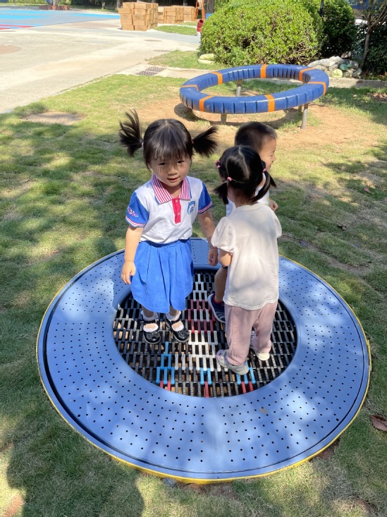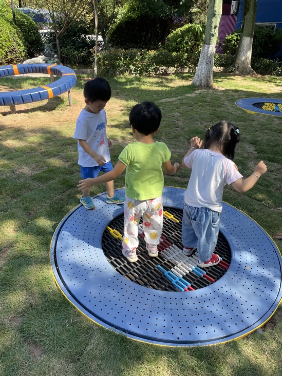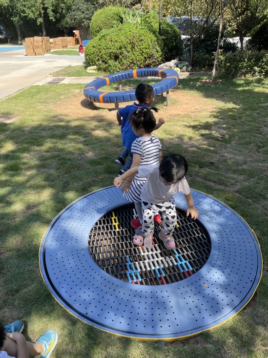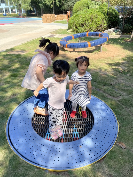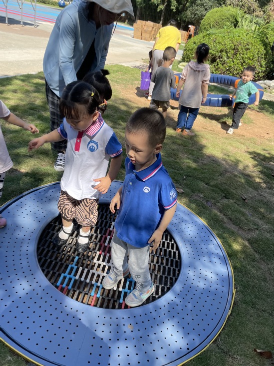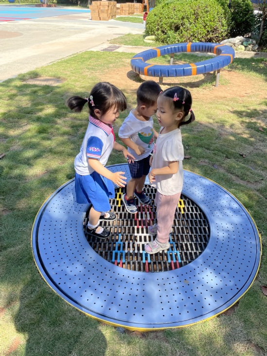 哇塞,今天上幼儿园好开心啊,户外活动时间老师带我们来到了——魔法巢里宇宙空间站。这里好神奇啊,有会转动的转盘,蹦蹦床,还有穿梭在楼梯里的滑滑梯,我们迫不及待的想要去玩了。但是,我们第一次来玩,一定要注意安全,老师和我们说了,要注意安全,玩的时候不要推挤小朋友,小手要扶稳转盘。玩蹦床开始轻轻跳,先试一试,如果觉得害怕就喊老师。我们要开始出发啦……