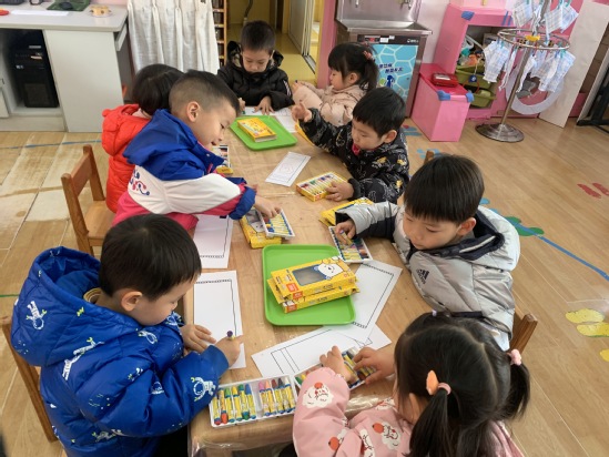 每个小朋友都很认真,希望设计出一款独一无二的毛巾。