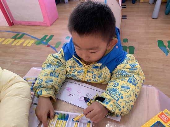 生活中的毛巾有各种各样的,有带花纹的、有格子的、有颜色不同的,今天我们也可以设计一条属于自己的毛巾,拿起油画棒,我们可以画圈、可以涂色、还可以画一些线条,每个小朋友都有很多的想法,设计的毛巾也不尽相同,下面让我们一起看一看,小四班的小朋友设计的毛巾是什么样子的吧!