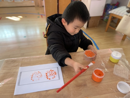 我的毛巾采用了拓印的方法,你看有好多的点点呢!