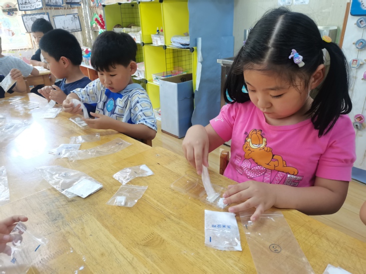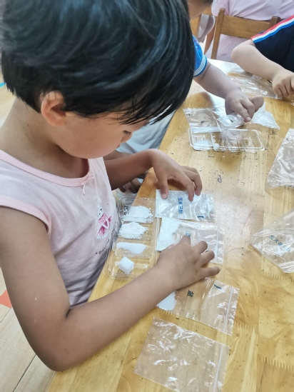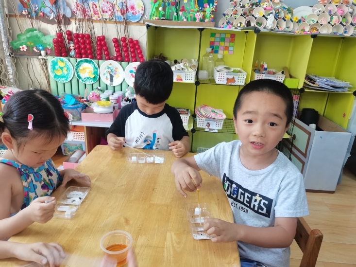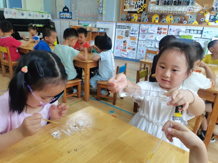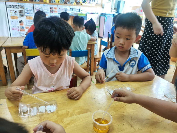 接下来,让我们用滴管吸起碘溶液,轻轻的滴在四种不同物体上哟!