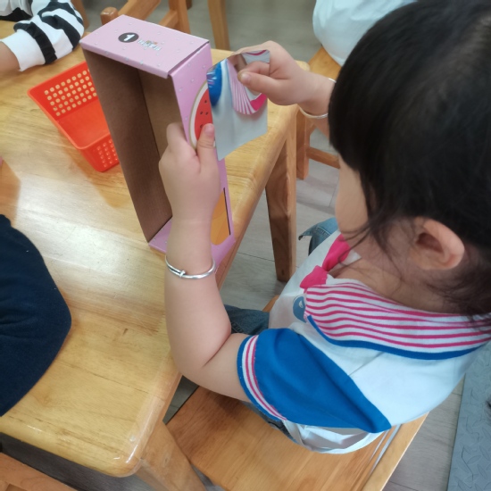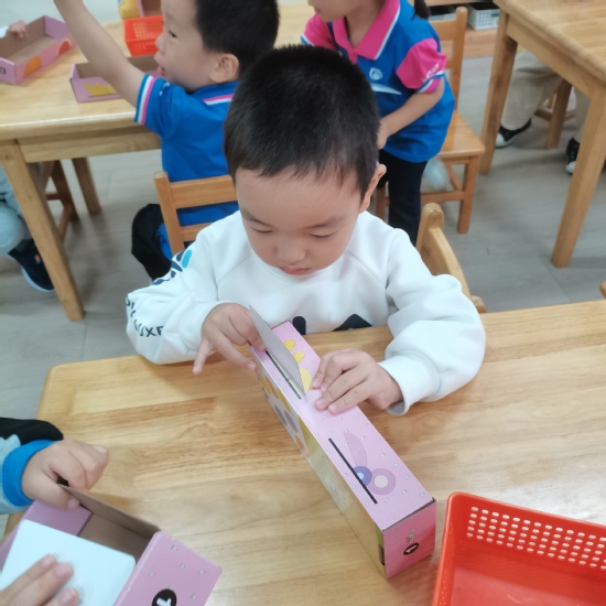 老师又拿出了魔法宝盒,让我们看一看上面有什么,可是上面的小剪刀、小皮球、西瓜、小熊怎么只有一半呢?